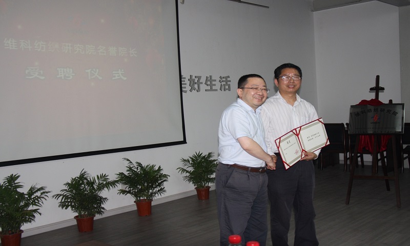 集團(tuán)領(lǐng)導(dǎo)陳國榮和沈謙祥共同完成了紡織研究院的揭牌,并由集團(tuán)領(lǐng)導(dǎo)呂軍為陳運(yùn)能院長頒發(fā)了紡織研究院名譽(yù)院長的聘書。