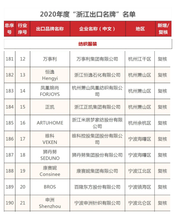 日前,浙江省商務(wù)廳公布了2020年度“浙江出口名牌”名單,維科集團“維科VEKEN”通過復(fù)核,再獲“浙江出口名牌”稱號,有效期為三年(2021--2023年)。加上之前評定的尚在有效期內(nèi)的興洋KōYō、天雪TISNOW品牌(有效期2019--2021年),集團目前已有三個“浙江出口名牌”。