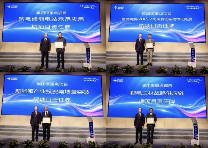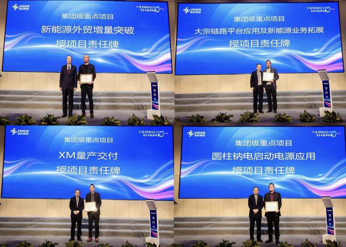 會(huì)上,鈉電儲(chǔ)能電站示范應(yīng)用、氫能隔膜( VHES 2.0)研發(fā)創(chuàng)新與市場(chǎng)拓展、新能源產(chǎn)業(yè)投資與增量突破、鋰電主材戰(zhàn)略供應(yīng)鏈、新能源外貿(mào)增量突破、大宗鏈路平臺(tái)應(yīng)用及新能源業(yè)務(wù)拓展、XM量產(chǎn)交付、圓柱鈉電啟動(dòng)電源應(yīng)用等八個(gè)集團(tuán)級(jí)重點(diǎn)項(xiàng)目的責(zé)任人從項(xiàng)目意義、項(xiàng)目目標(biāo)、團(tuán)隊(duì)成員、項(xiàng)目工作措施、項(xiàng)目存在風(fēng)險(xiǎn)及應(yīng)對(duì)、項(xiàng)目里程碑節(jié)點(diǎn)、項(xiàng)目資源需求等方面對(duì)項(xiàng)目進(jìn)行了解碼發(fā)布。集團(tuán)考薪委主任陳總,高新董事長(zhǎng)、維科技術(shù)考薪委主任呂總對(duì)重點(diǎn)項(xiàng)目分別作了對(duì)賭考核要求,項(xiàng)目責(zé)任人簽署了責(zé)任狀,并授予了重點(diǎn)項(xiàng)目責(zé)任牌。