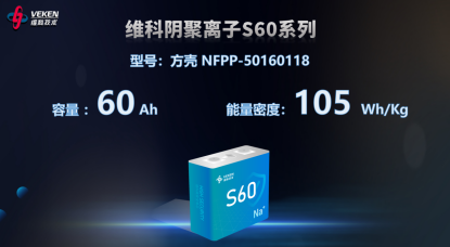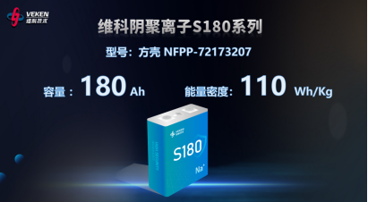 維科聚陰離子S180系列,型號為方殼 NFPP-72173207,容量180Ah;維科陰聚離子S60系列,型號為方殼 NFPP-50160118,容量60 Ah。兩款聚陰離子鈉電池在多個關(guān)鍵指標上達到行業(yè)領先水平: