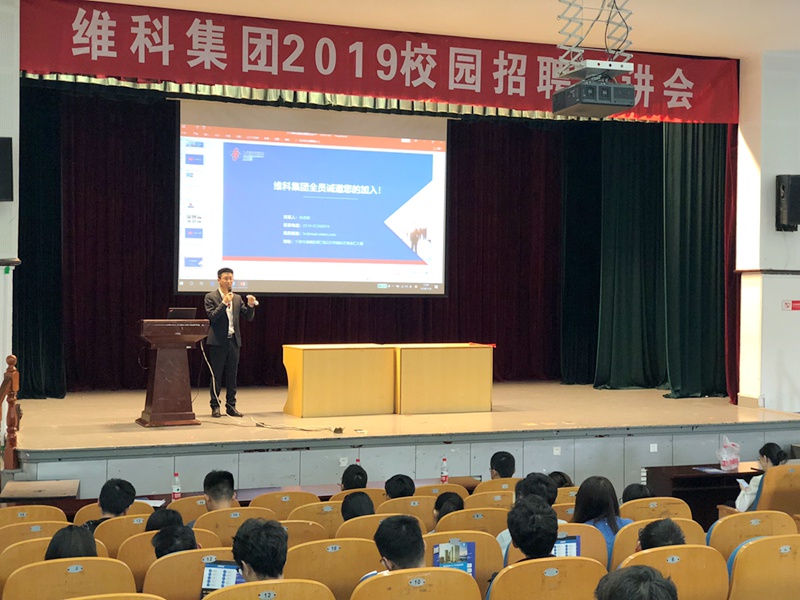 2018年11月6日,維科集團2019年校園招聘正式啟動,首站校招宣講會在寧波大學舉行,集團總部、東海租賃、維科電池、鴨鴨羽絨、維科家紡、嘉豐物資等用人單位聯(lián)合參會,集團副總裁蘇總親自參會并做宣講。此次校招共推出投資、研發(fā)、職能類等10個大類30余個需求崗位,共收到學生簡歷90余份,研究生學歷占46%。