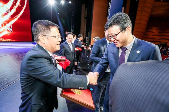 2018年11月16日,以“甬立潮頭、合力興甬”為主題的世界“寧波幫?幫寧波”發(fā)展大會(huì)在寧波文化廣場(chǎng)保利大劇院隆重舉行。在1000多位來(lái)自25個(gè)國(guó)家和地區(qū)的“寧波幫”和幫寧波代表人士的見證下,本次會(huì)議揭曉了“改革開放40周年·時(shí)代甬商”名單,由浙江省委副書記、寧波市委書記鄭柵潔親自頒獎(jiǎng)。集團(tuán)董事長(zhǎng)何總上榜榮獲“杰出甬商”稱號(hào)。