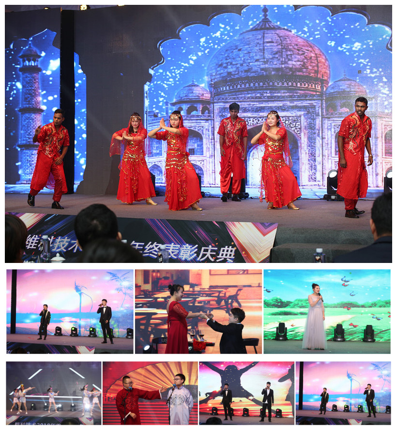 年會中活躍的氣氛、創(chuàng)意的節(jié)目、精美的獎品使得慶典在表彰的同時不失趣味。獨唱、舞蹈、串燒、合唱、相聲、魔術(shù)應(yīng)有盡有,印象尤為深刻的有舞蹈《Chinese & Indian illusions 》,聯(lián)誼印度員工,一起跳起神秘國度的舞蹈,獻(xiàn)舞2018年維科技術(shù)印度市場的突破,同時也表達(dá)了公司對前往達(dá)曼工作,為公司開拓印度市場沖鋒陷陣,披荊斬棘員工們的關(guān)心和關(guān)注。與此同時,我們也收到了在異國他鄉(xiāng)的維科員工的新年祝福。
