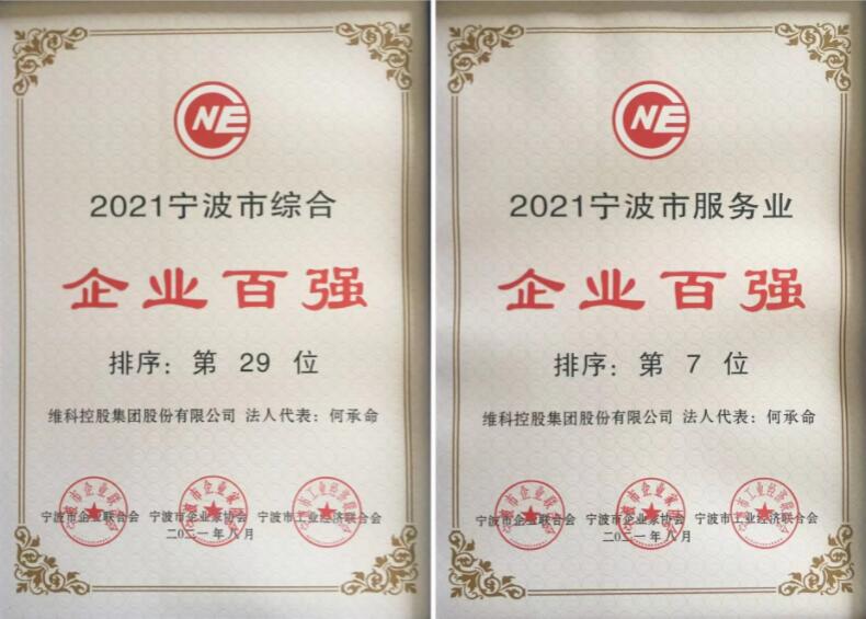 VEKEN集団は2021寧波市総合百強(qiáng)企業(yè)、サービス業(yè)百強(qiáng)企業(yè)の栄譽(yù)を獲得