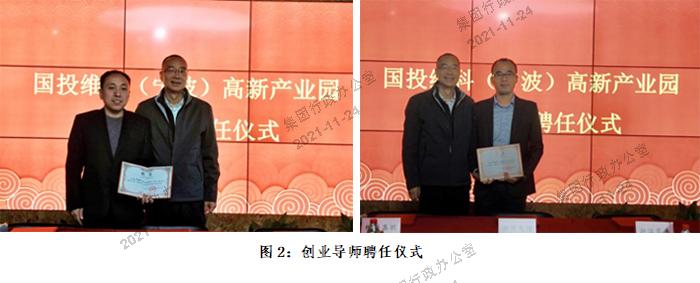 まず、國(guó)投維科(寧波)ハイテク産業(yè)園創(chuàng)業(yè)指導(dǎo)者の任命式が行われ、維科雲(yún)羿プロジェクト総経理の胡軍が2人の創(chuàng)業(yè)指導(dǎo)者に任命狀を授與した。
