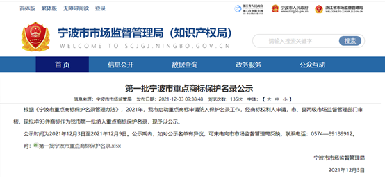 「寧波市重點商標(biāo)保護(hù)名簿管理方法」の関連規(guī)定によると、重點商標(biāo)とは寧波で高い知名度を有し、大きな市場影響力を有し、権利侵害の偽造を受けやすく、保護(hù)を強化しなければならない登録商標(biāo)を指す。市場監(jiān)督管理、公安、検察院、裁判所、稅関などの多部門が協(xié)力し、重點商標(biāo)の協(xié)同保護(hù)メカニズムを確立し、重點商標(biāo)専用権の保護(hù)に力を入れる。それに、名簿中の商標(biāo)の國際登録と保護(hù)を保護(hù)するため、商標(biāo)警報、専門家とのコンサルティング、法律政策の解読、海外の権利維持支援などのサービスを提供する。