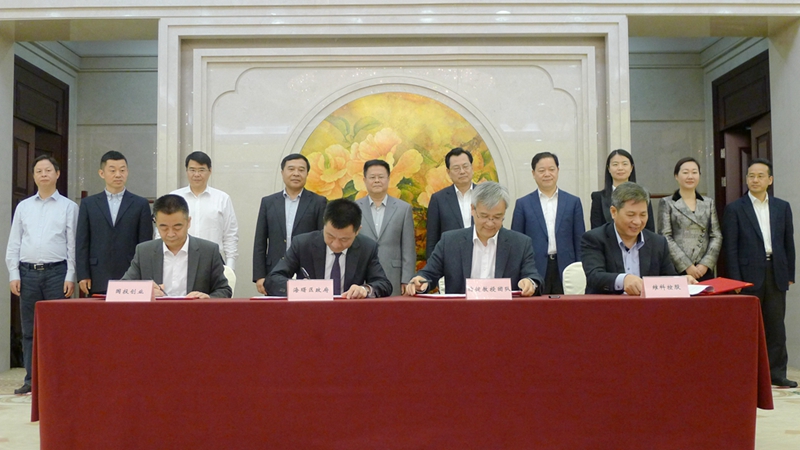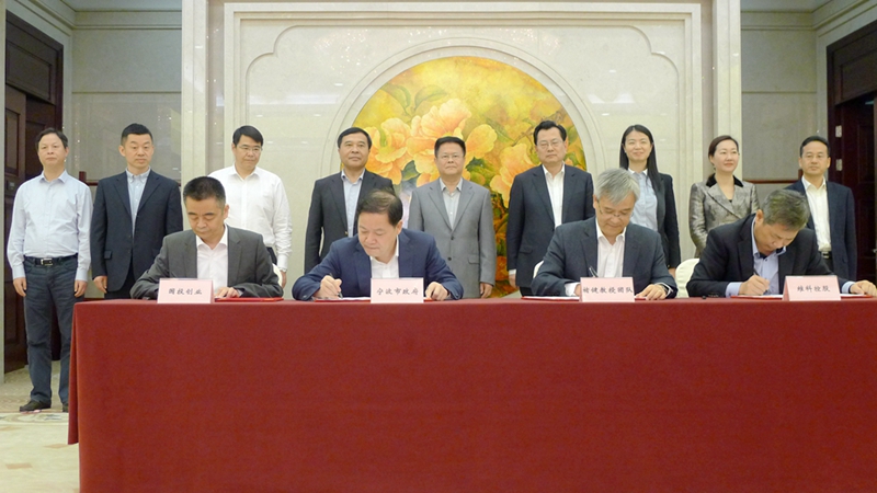 その後、海曙區(qū)人民政府區(qū)長褚孟形、褚健教授、國投創(chuàng)業(yè)総経理高の愛民、維科グループ総裁の何承命は各方面の代表として「協(xié)力協(xié)議」を締結(jié)した?!笇幉üI(yè)インターネット研究院有限會社」の各プロジェクトを共同で推進する。
