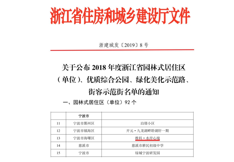 先日、浙江省住宅と都市と農(nóng)村建設(shè)庁は「2018年度浙江省園林式居住區(qū)(単位)、良質(zhì)総合公園、緑化美化モデル道路、街容モデル街リストの通知」を発表し、維科水岸心境団地がランキングになり、2018年度浙江省園林式居住區(qū)を獲得し、寧波市の計9社の企業(yè)や事業(yè)単位がこの栄譽を獲得したが、海曙區(qū)は水岸心境団地だけだった。